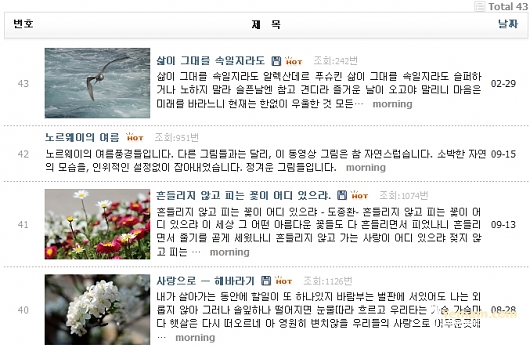 142 [그누소스] 페이지에 최신글이 아닌 게시판을 바로 출력… Morning 02-27 4579